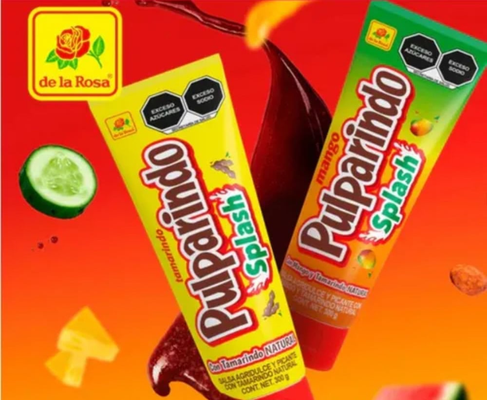 De La Rosa Pulparindo Splash MANGO 🥭 Tamarind Flavor – Single Bottle | Spicy & Sweet Mexican Candy for Snacks, Fruits, Beverages